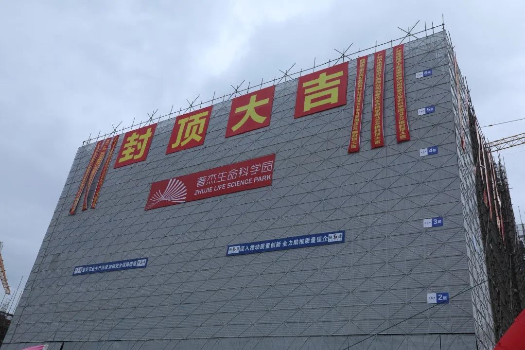 著杰生命科学园项目4#、5#楼主体封顶