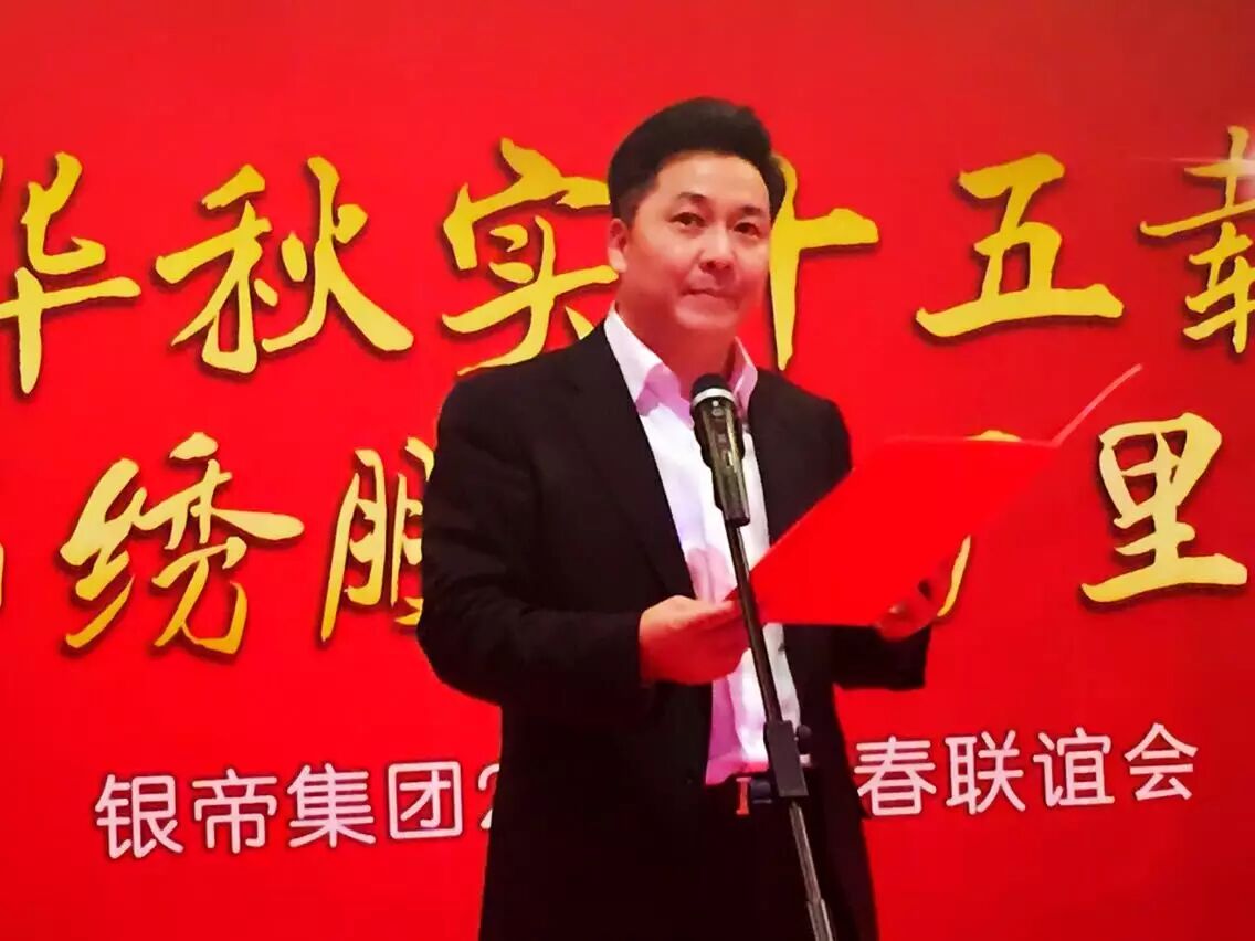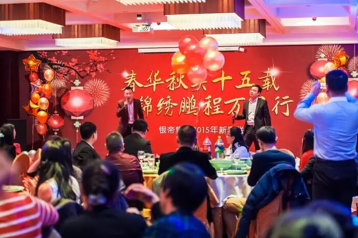 晚会伊始,银帝集团董事局主席朱奕龙送上热情洋溢的新春祝福。主席说,时光如白驹过隙,匆匆流逝,回顾银帝十五年发展的历程,我们前进的每一步,都镌刻着银帝人艰苦创业的激情和收获成功的喜悦。2015年,我们要以战略的眼光把握时代赋予的新机遇,以审慎的目光审视新的市场格局,从容应对,将银帝建设成为更具竞争力的一流企业。