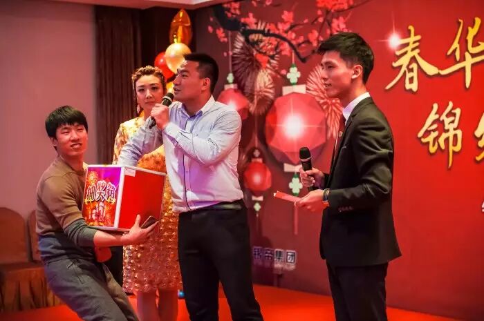 节目中穿插的互动游戏和抽奖环节带动起在场观众的情绪并将晚会推向一个又一个高潮。在抽奖环节中朱奕龙主席和集团多位高管荣膺第一波幸运奖。晚会特别奖由朱奕龙主席揭晓,银帝传媒刘姗姗在获得一等奖之后又一次幸运的获得了此奖,正如她在获奖感言中所说,在银帝只要有梦想就能实现,这也是朱主席对银帝人的殷切期望。