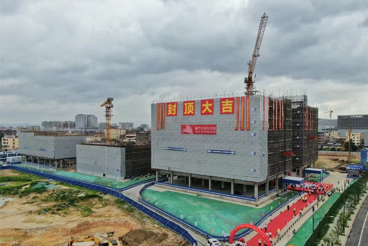 银帝集团著杰生命科学园项目举行首批厂房主体结构封顶仪式
